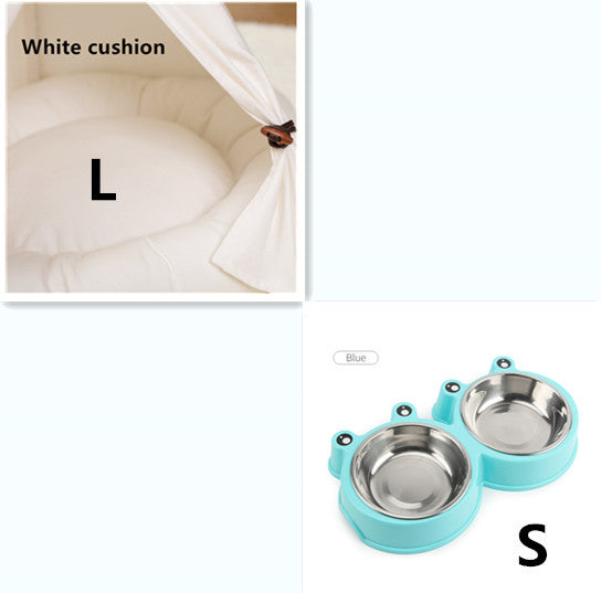 Fabric: canvas, wood, PP cotton Features The product is simple and beautiful, suitable for small pets, built-in canvas pad, is a must for pet home.