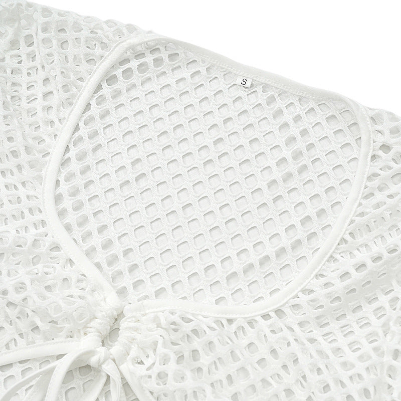 Lace Mesh Long Sleeve Narrow Casual Knitted Maxi Dress Suit