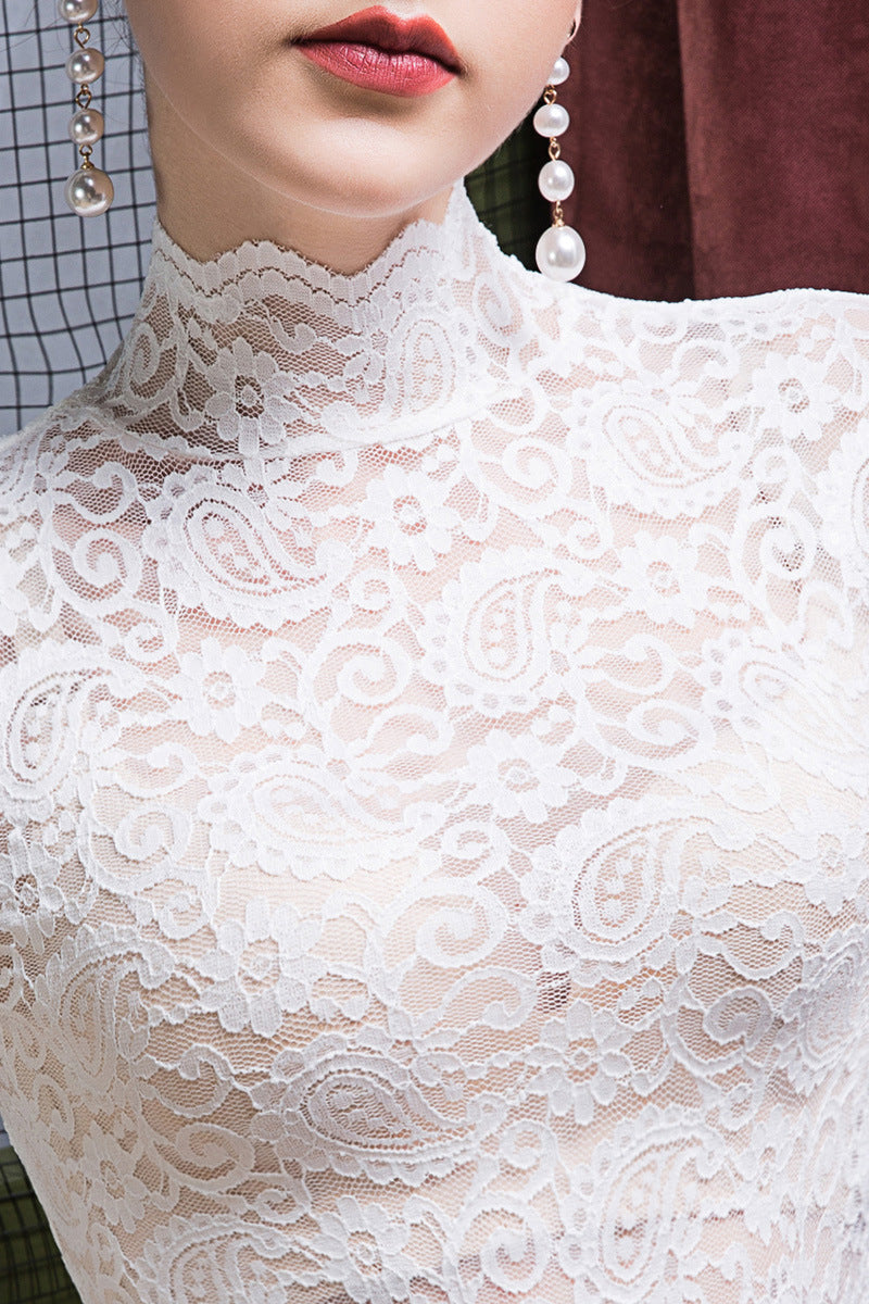 New Standing Collar Lace Bottom Top For Women's Tank Top Slimming
