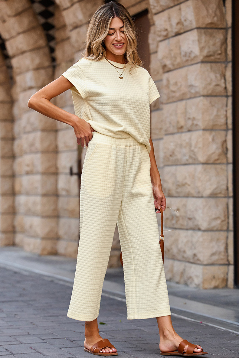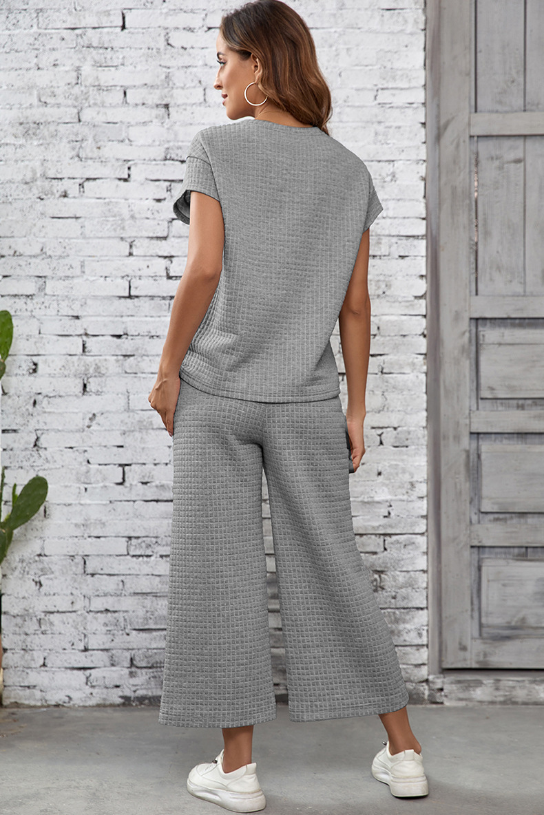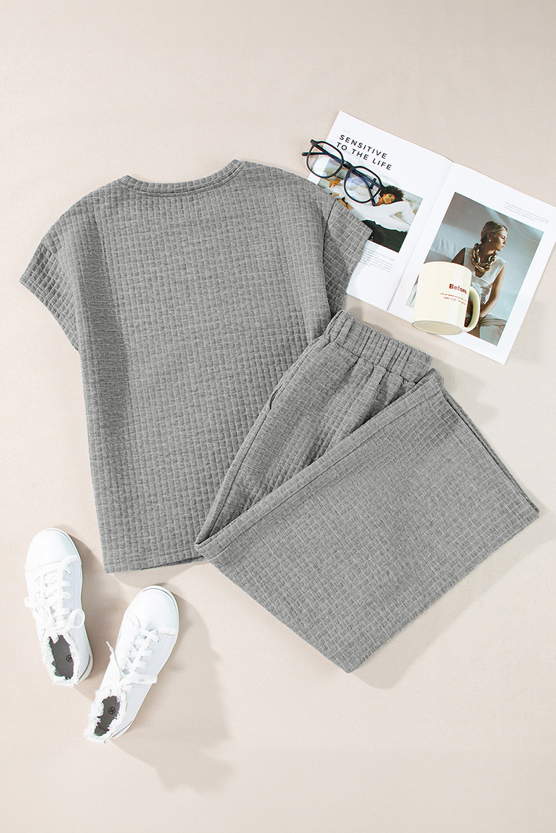 Solid Color Texture Fashion Women's European And American Leisure Two-piece Set